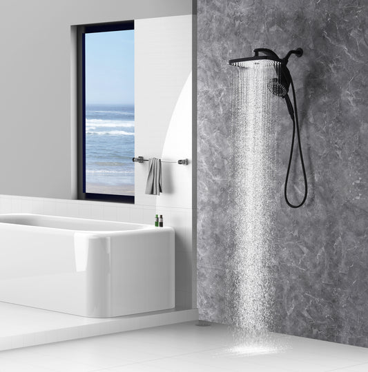 INAVAMZ 12" High Pressure Rainfall Shower Head with Detachable Handheld Set, 60" Hose, 9 Spray Setting, Black